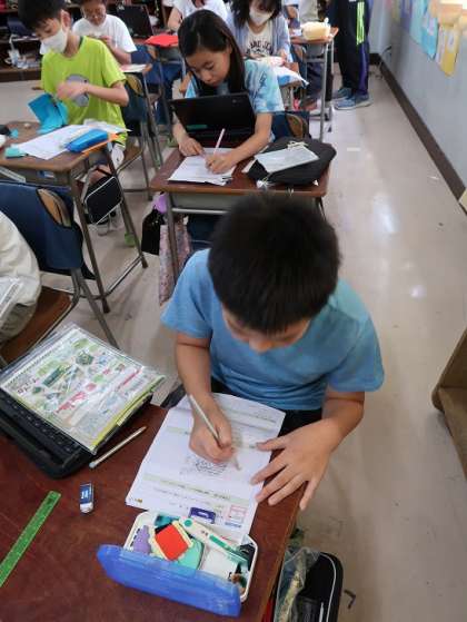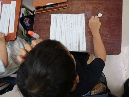 2年生が班で話し合っていました。テーマは自分達で作るおもちゃを何にするかを決めているようです。決まった班もありますが、意見が分かれて悩んでいる班もあります。悩みを解決する過程に大切な学びがあります。あきらめずに話し合う2年生が素敵です。