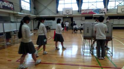 立会演説会の後は、順に投票を行いました。厳かです。