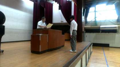 その後、表彰を行いました。夏休みの読書コンクールの受賞(佳作)と、9月23日(火)に行われた練馬区連合陸上大会入賞についての表彰でした。