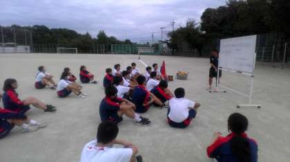 この日は「朝礼B」生活指導朝礼でした。生活指導主任からは、集団行動での所作や礼法について話がありました。それから、10月26日(日)地区祭のボランティア募集を呼びかけました。たくさん応募してほしいです。