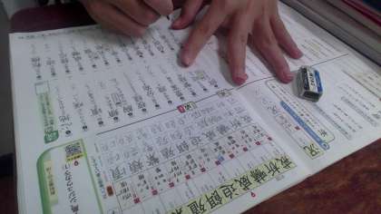 授業開始4分間は漢字の学習です。