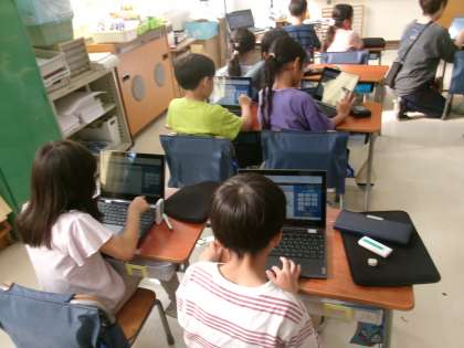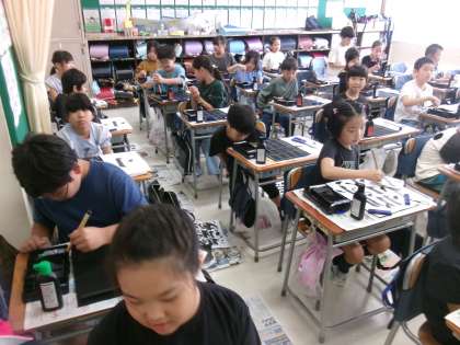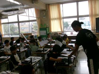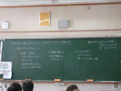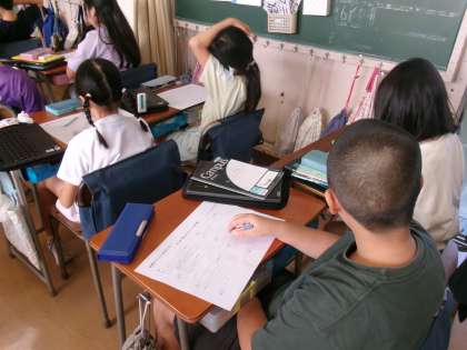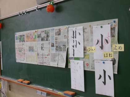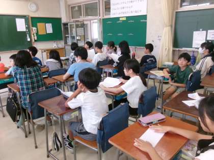 10月9日(木)運動会に向けて 選抜リレー練習2![]() ![]() ![]() ![]() ![]() ![]() 「減速しないバトンパス」を心がけて、レースでも、素晴らしいバトンパスを見せてくれました。 5年生も上手でしたが、すぐ近くに更に上手なお手本がいます。 本番まであと数回練習がありますね。 バトンパスもスムーズに。 スピードを生かし、全力で駆け抜けましょう。 10月9日(木)運動会に向けて 選抜リレー練習![]() ![]() ![]() ![]() ![]() ![]() 5・6年生の選抜リレーの練習です。 4チームに分かれて、バトンパスの練習をした後に、 レースをしてみました。 さすが、選抜に選ばれる子たちです。 素晴らしいスピードでした! 10月9日(木)6年生道徳 友達とは![]() ![]() ![]() ![]() ![]() ![]() 「コスモスの花」という資料を基にしながら、自分自身の日頃の生活の振り返り、友達の関係について自己を見つめ直します。 クラス替えをしてから半年がたちました。 日々の学習、学校生活、そして学校行事も一生懸命共に頑張る友達 よい関係のときもあるでしょう。 時にはぶつかることもあるでしょう。 しかし、共に同じクラスで、同じ学年で頑張っているかけがえのない仲間です。 今日の授業をきっかけに、「友情、信頼」 について、よりよく考えられるとよいですね。 ちなみに、この授業は「東京教師道場」の研究授業であり、他校の先生方にも見ていただきました。そして、校内の先生方にもです。 6年生が集中して道徳の授業に向かっている姿、たくさん見ていただけましたね。 10月9日(木)5年生家庭科 気持ちのよい住まいにするために![]() ![]() ![]() ![]() ![]() ![]() 5年生は家庭科の学習で「気持ちのよい住まいにするための掃除の仕方」を学びます。 黒板を拭いている人、床を拭いている人など様々います。 そして素晴らしいのが、その掃除をしている子たちを見ている子(観察している子)がいるということです。どんなことを工夫するとよりきれいになるか、アドバイスができそうですね。 そして、掃除をしてきれいになった後というのは、気持ちよいですね。 家庭科で学んだことは、おうちでもできるようにすることが重要ですので、ぜひ、この学習を自分の家での掃除にも役立ててほしいです。 10月9日(木)2年生国語 「お手紙」![]() ![]() ![]() ![]() ![]() ![]() と かえる くんのやりとりから、登場人物の気持ちを考えていく2年生の有名な教材「お手紙」 友達を大事にしている登場人物の行動は、読んでいてとても気持ちがよいです。 そして、このお話のタイトルと同じように、2年生は自分から登場人物に向けて「お手紙」を書いています。よく読んでいないと、お手紙書けませんからね。 内容もしっかりと理解しています! 10月9日(木)1年生 運動会の練習![]() ![]() ![]() ![]() ![]() ![]() で張り切る1年生 体育館で学年全体での練習です。 うでをかっこよく伸ばすところがよくできていたり、 また「ドン」という力強い足の音も聞こえてきたりしました。 来週からはいよいよ校庭に出て行って、本番と同じ隊形で練習をしつつあります。 たくさんの方に見ていただけますからね。頑張って覚えましょう! 10月9日(木)4年生理科 雄花と雌花の違いは?![]() ![]() ![]() ![]() 「雄花」と「雌花」があることを知り、本当かなあ?と、 実際畑に見に来る4年生 春に植えたヘチマが、今は秋ですが、どういう状態になっているでしょうか? このヘチマの黄色の花から、雄花・雌花の特徴・違いを見ています。 「百聞は一見に如かず」です。 よく観察して、その特徴・違いを発見しましょう。 10月9日(木)3年生書写 「小」![]() ![]() ![]() ![]() ![]() ![]() 1年生で習う漢字ですが、鉛筆で書くのと毛筆で書くのとでは大きく違います。 難しさもあります。 そしてこの字には、毛筆のテクニックである 「はらい」、「はね」、「とめる」というものが入っており、大変、筆遣いの練習になる字です。 「小」をたくさん書き、そのテクニックも身に付けている3年生です。 10月8日(水)5年生 岩井移動教室パンフレット作り![]() ![]() ![]() ![]() ![]() ![]() 「岩井移動教室」 その三日間の中で、自分が伝えたいことを決めて、パンフレットにしています。 実際、自分の目で確かめ、体験したからこそ、説得力のある内容に仕上げられるのですよね。 ぜひ、その内容を読みたいです。 そして、これから移動教室に行く、下学年の子たちにも伝えたい内容ですね! 10月8日(水)4年生社会 水害からくらしを守る![]() ![]() ![]() ![]() ![]() ![]() 「水害からくらしを守る」の内容を行っています。 名付けて、「三つの「安心アクション」大作戦 たとえば、防災のアプリをダウンロードして、自分にできることを探す。これもよいことですね。 災害については、毎月の避難訓練でも学習していますが、水害だって、いつ起こるかは分かりません。 そういったときに、自分自身でできることを考えておくと、もちろん焦ることはあると思いますが、少しでも冷静に行動できるかもしれません。 学習用タブレット端末を活用しながら自分