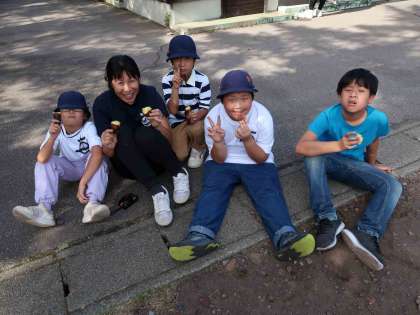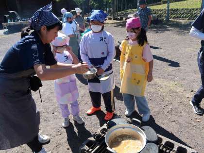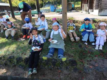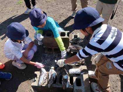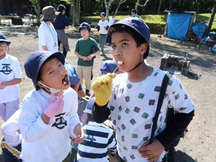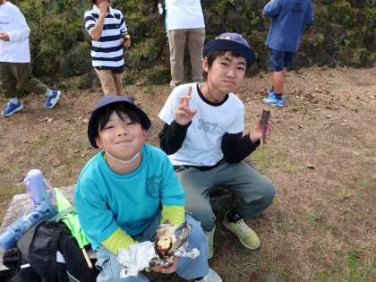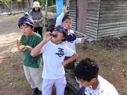 たくさん遊んだ後は、飯盒炊飯の残り火に入れておいたサツマイモをおやつにいただきました。ほくほくのお芋の味は格別でした。