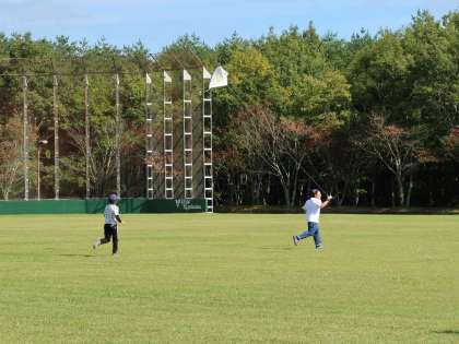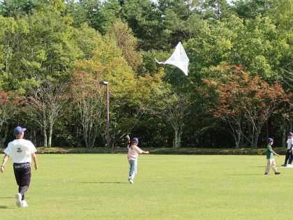 昼食の後は、広いグランドで凧あげなどをして遊びました。青空のもと、思いっきり走って気持ちよかったです。気持ちも上がりました。