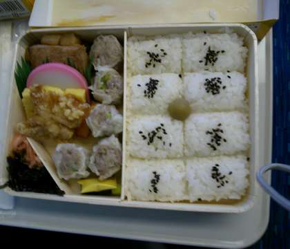 セサミパン、ツナのチーズローフ、白いんげんのトマトスープ、牛乳 セサミパンは某サンドイッチチェーンのパンを思い出させます。タテに間をあけて、レタスやチーズをはさみますが、私はちぎってスープに浸して食べます。スープのしみたパンは口の中でトロッと溶けてしまいます。スープにはキャベツ、ニンジン、玉ねぎ、豚肉、白いんげんが入っていてトマトスープによく味がしみ出ていておいしいです。チーズローフは卵焼きのようで、こちらも美味しいです。
