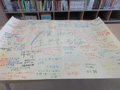 いよいよ合唱コンクールが来週15日(水)に迫ってきました。3年生が感染症のため、9日(木)まで学年閉鎖になっていて、少し心配されますが、1.2年そしてI組は元気に合唱練習に取組んでいます。8日(水)にI組の教室を覗くと、合唱曲への思いが書かれたポスターが机の上にのっていました。合唱曲“生きている証”をテーマに一人一人が自分たちの生きている証を書してくれています。“自由に卓球ができる時”“音楽で楽しく歌う時”“家族や友達と楽しい話をしている時”などそれぞれが生きている証を感じているそうです。この思いを込めて、15日(水)は練馬文化センターですばらしい合唱を聞かせてくれることと思います。ぜひ足を運んでいただければと思っています。