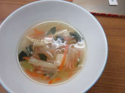ゆかりごはんは、程よい塩味と酸味がして美味しくいただけます。最初に竜田揚げをハラミの部分からいただきます。魚の油がジワ〜と口の中に広がります。魚の油はDHA、EPAなどがあり、頭に良いそうです。急に頭がさえてきました。まだ口の中で噛んでいる間にお汁を流し込みます。うすくず汁ということで、てっきり葛でトロミがついているのだと思っていたら、栄養士さんから“そんな高いもの使えないのよ”とのこと片栗粉でトロミをつけてあるそうです。少しガッカリです。でも言われてみれば仕方ないですね。トロミがついているだけで、普段のお汁よりも高級に感じてしまうのは、私だけでしょうか。もみうりも、瓜の仲間のキュウリを使って経済的に作られています。さっぱりしていておいしいです。今日の給食からは美味しさと経済について学ぶことができました。いかにおいしく、安く料理を作るのか、栄養士さん、お母さん、うちのカミさんに感謝です。