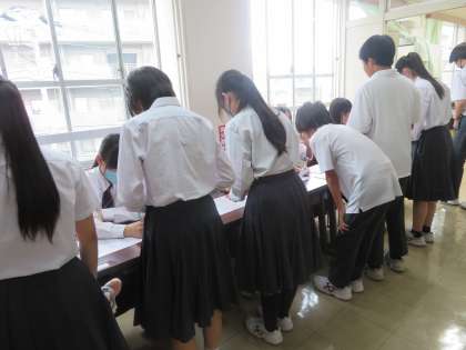 9月22日(月)生徒会役員選挙を実施しました。今年は生徒会長に3名が立候補し、役員は信任投票となりました。9月初旬から校内演説や正門でのあいさつ等に果敢に取り組み、立候補者、応援演説者ともに見事な立会演説を披露し、選挙管理委員をはじめ、投票する生徒も真剣に選挙に臨んでいました。