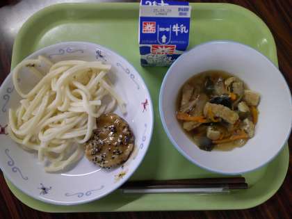 牛乳 彼岸うどん 豆入りいももち 9月20日(土)から26日(金)は秋彼岸です。秋彼岸は、秋分の日と前後3日間を合わせた7日間のことです。 お墓参りをしたり、おはぎをお供えしたり、お墓で眠っているご先祖様に「いつも見守ってくれてありがとう。」 と挨拶をします。季節の変わり目のこの時期に、胃腸に優しい麺類を食べる習慣から名付けられた「彼岸うどん」と、邪気を払う赤色の金時豆を入れた「いももち」を組み合わせました。 今日もおいしくいただきましょう! 今日の給食【9月22日】