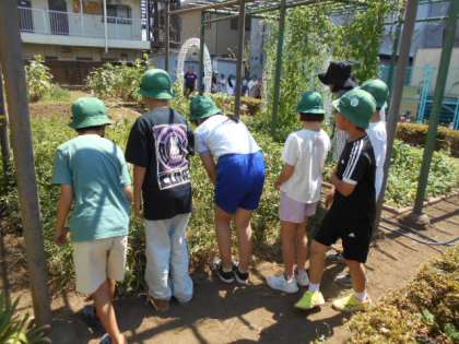 投げる動きにつながるタオル体操をしました。 家でもやってみるといいですね。 4年生 ヘチマの観察
