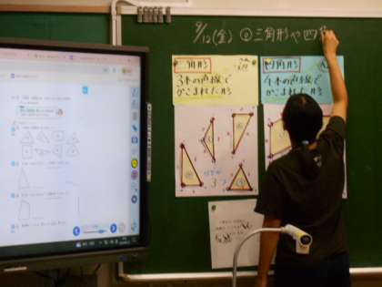 しばらくの間、亀も金魚もメダカも、たらいや水槽に避難しています。 地球温暖化が環境や生態系を変えてしまう身近な一例かもしれません。 2年生 三角形と四角形