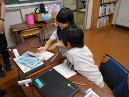 だいぶ慣れてきたようで、子供たちは集中して自分の作品をつくって いました。 6年生 算数(グラフ、データの関係)