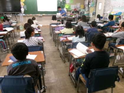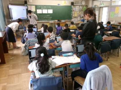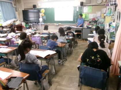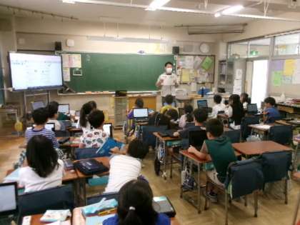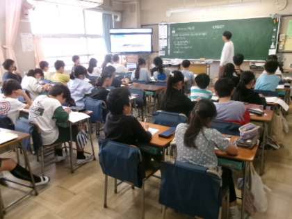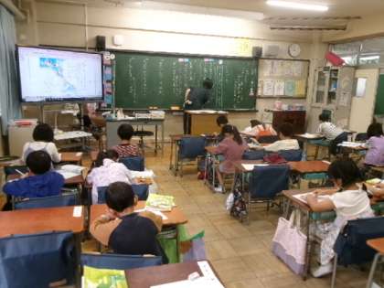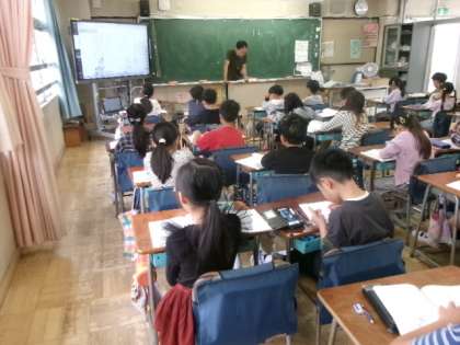 4年生の社会科の時間には、水害からくらしを守る仕組みなどについて学習しています。この時間には、練馬区以外の水害対策について調べています。