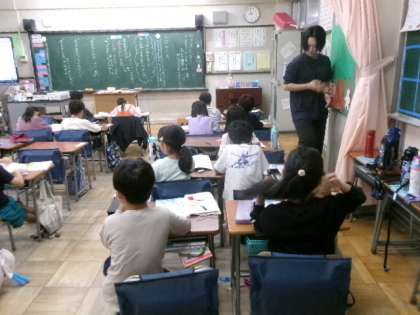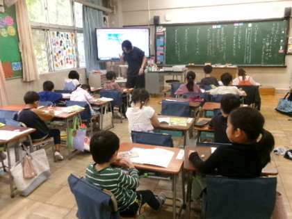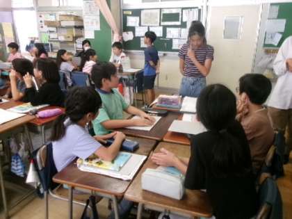 1年生の国語の時間には、「くじらぐも」という物語を読んでいます。登場人物になりきって台詞よ読むために様子や気持ちなどについて考えています。