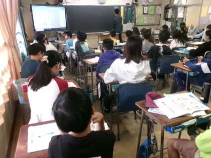 2年生の算数の時間には、長方形と正方形、直角三角形などについて学習しています。いろいろな図形を方眼紙に書いたり、タブレットで書いたりしています。