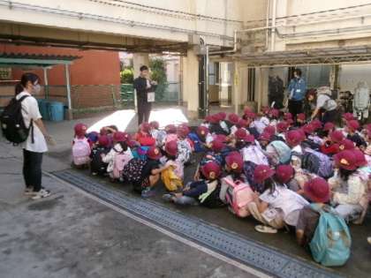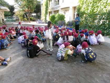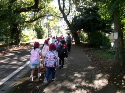 10月17日(金)は1年生の遠足です。好天にも恵まれました。出発式の後、小金井公園に向けて出発です。