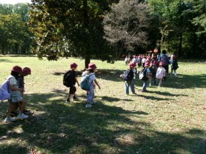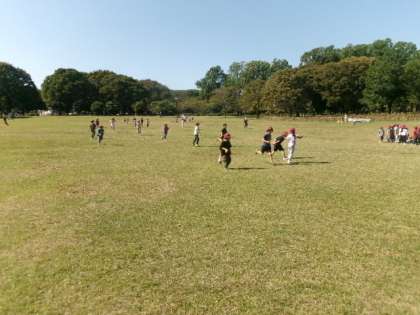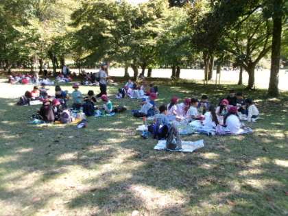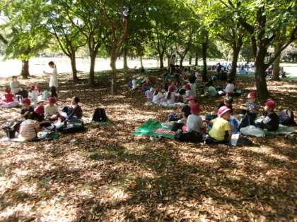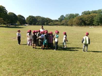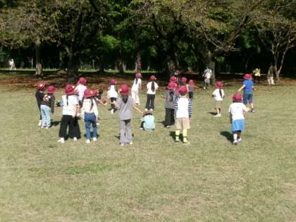 公園では学級ごとに行動しました。広場で学級で決めた遊びをしているところです。