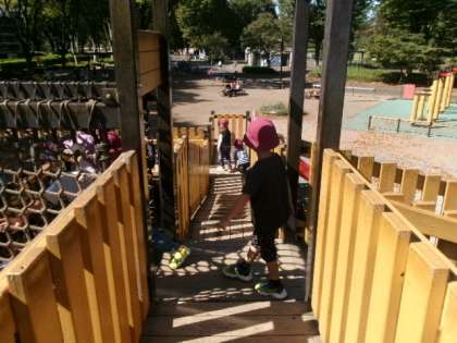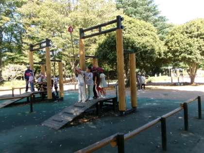 遊具で遊んでいるところです。他の団体の皆さんもたくさんいらしていましたが、譲り合って遊べていました。