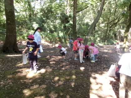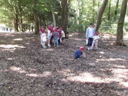 ドングリ拾いをしているところです。今年は結構豊作のようです。