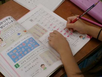 何種類かの海の生き物がバラバラに並んでいる絵を、種類ごとに表にまとまる活動をしていました。並べ替えをして、見やすくすることの良さを学ぶ授業です。この学びがグラフや表の学習の基礎となります。