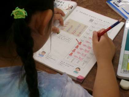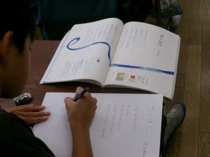 ガイドラインのない白い用紙に、全体のバランスを考えて書き写すのは想像以上に難しいですね。一文字一文字間違えないように書いているクラスはシーンとした静けさがありました。