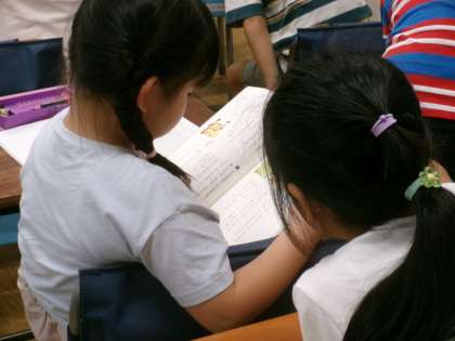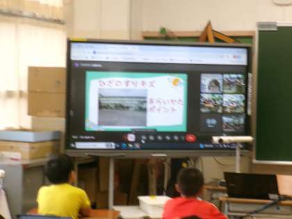 学校にいる生き物の名前を発表して、実際にどこで見たのかを教えてくれています。