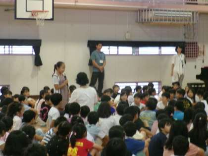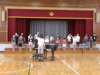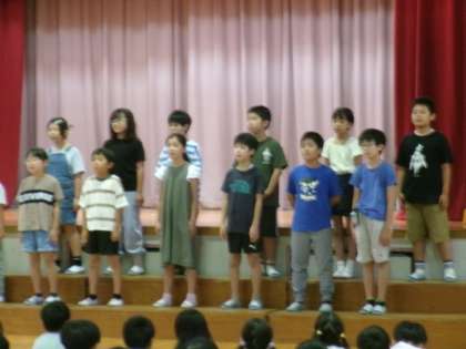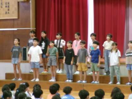 4年生有志による、「赤い屋根の家」と「風になりたい」の合唱発表の時間です。明日開催の敬老祝賀会に向けて練習を重ねてきました。今日は全校のみんながいることで緊張してしまったという声が聞こえました。「本番前に緊張する経験ができてよかったね」と、明日に向けて意欲が高まりました。各学年から代表の子が感想を発表してくれて、4年生のみんなも嬉しそうに聞いていました。