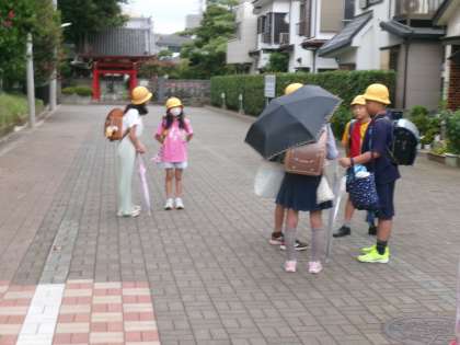 今朝は登校指導日です。火曜日のお昼休みに、登校班の班長さんと安全な登校についての確認を行いました。今日は職員も集合場所から一緒に登校します。
