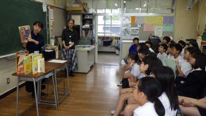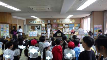 読書旬間の取組の1つとして、図書館管理員の澤田さんによる読み聞かせがありました。