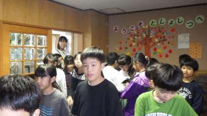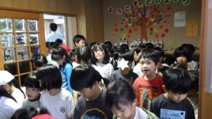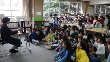 読み聞かせが終わって、満足げに教室に戻る子どもたちでした。