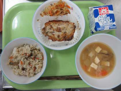今日は、群馬県の郷土料理「まいたけご飯」と「こしね汁」です。 ご飯に使用しているまいたけは、群馬県が主な産地で、秋から冬が旬のきのこです。 「こしね汁」は、群馬県富岡市の特産品、こんにゃく、しいたけ、ねぎを使用しています。それぞれ頭文字をとってこしね汁と言います。 群馬県の郷土料理を味わっていただきました。 今日の子どもたち 授業のひとこまより