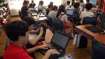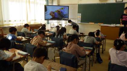 今日は、先日の1〜4年生に続き、5・6年生の朝の教室の風景です。