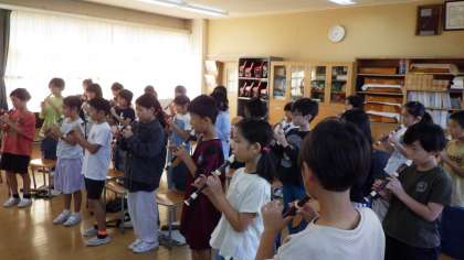 4月に初めてリコーダーの学習を始めた3年生も、すっかり曲を吹けるようになっています。 今日は、担任に聴いてもらうために張り切っていました。