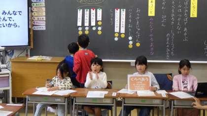 もちろん、教師の指導のもと(れっきとした授業!なので・・・)ですが、司会グループは子どもたちだけですすめていました。意見には、しっかり理由を付けて発表していました。 こうして、1年生からとにかくやっていくことで、この学習の積み重ねが学年が進行するごとに確かな力となって表れていきます。