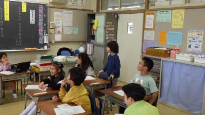 学級担任がいない場合、他の教員が入って指導することを「補教」と呼んでいます。 国語の学習のはじめに、「漢字マスター」を子どもたちが交代ですすめているようで、いつものように自分たちですすめていました。 日常の力が発揮されていて感心しました。