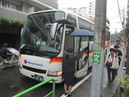 バスが学校を出発しました。順調に関越自動車道に乗りました。