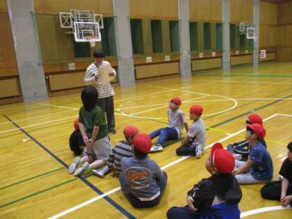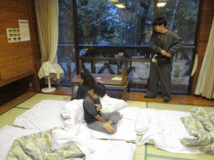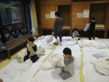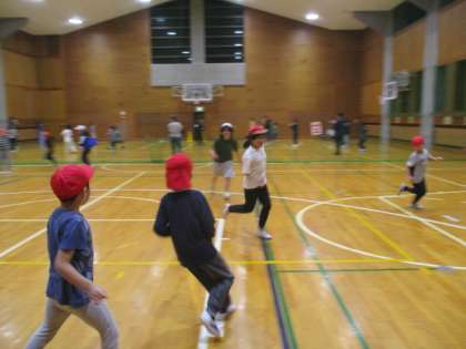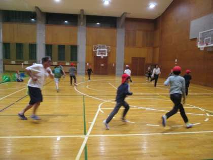 夕食後のお楽しみは、体育館でのレクになります。事前に担当の子たちが考えたレクで楽しみました。レクは「こおりおに」と「先生追いかけおに」、どちらも走る系のレクでしたが、いい汗をかいていた子供たち。このあと一息入れてから就寝準備です。今日一日よく頑張りました。