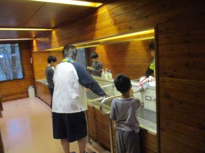 自分たちの部屋に入った後は、荷物整理をしたり、水筒の中を洗ったり、入用準備をしたりしています。てきぱきと行動している子が多くいます。