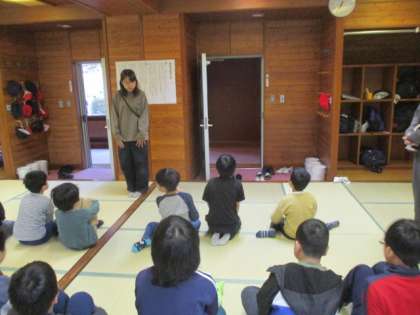 身支度を済ませて、朝の集いで今日の予定の確認です。外はかなり冷え込んでいたので、部屋で行いました。みんなで歌もうたい、体を目覚めさせていきましょう。