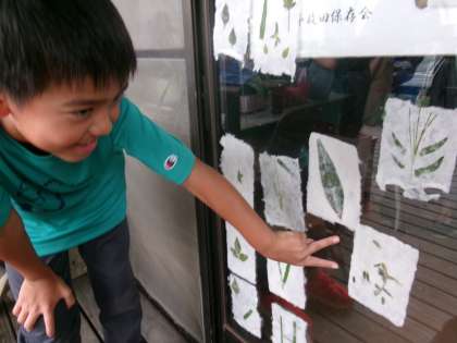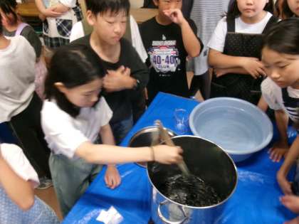 紙すきチームは、珍しそうな道具と材料を見て、目を輝かせていました。