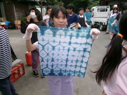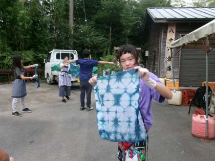 藍染めチームは、早速スタッフの方の説明を聞きます。