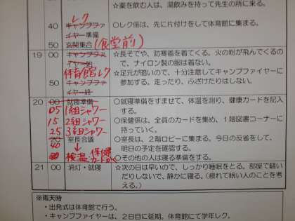 9月18日(木)5年生岩井移動教室2日目 海洋学習オリエンテーリング8![]() ![]() ![]() ![]() ![]() ![]() 9月18日(木)5年生岩井移動教室2日目 海洋学習オリエンテーリング7![]() ![]() ![]() ![]() ![]() ![]() 9月18日(木)5年生岩井移動教室2日目 海洋学習オリエンテーリング6![]() ![]() ![]() ![]() ![]() ![]() 9月18日(木)5年生岩井移動教室2日目 海洋学習オリエンテーリング5![]() ![]() ![]() ![]() ![]() ![]() 「砂浜にある帯状のラインはどうしてできたの?」 9月18日(木)5年生岩井移動教室2日目 海洋学習オリエンテーリング4![]() ![]() ![]() ![]() ![]() ![]() 時間は結構あるものの、たくさんのチェックポイントがありますからね。 有効に回っていきましょう。 9月18日(木)5年生岩井移動教室2日目 海洋学習オリエンテーリング3![]() ![]() ![]() ![]() ![]() ![]() どこから回るか、作戦会議です。 9月18日(木)5年生岩井移動教室2日目 海洋学習オリエンテーリング2![]() ![]() ![]() ![]() ![]() ![]() 近い! 雄大な光景 アクトインディーの皆様が行っている「海と日本」プロジェクト、そして、近くの少年自然の家の方も駆けつけてくださり、海洋学習オリエンテーリング!です。 先週、学校で事前学習もしていますからね。 いざ、本番! 9月18日(木)5年生岩井移動教室2日目 海洋学習オリエンテーリング![]() ![]() ![]() ![]() ![]() ![]() 駐車場から歩いて、歩いて、下っていきます。 林はひんやり これが自然の涼しさ! 9月18日(木)5年生岩井移動教室2日目 朝食4![]() ![]() ![]() ![]() ![]() ![]() ○野菜炒め ○ウインナー ○スクランブルエッグ ○春雨サラダ ○野菜ごった煮 ○さけ塩焼き ○漬物 ○梅干し ○ふりかけ ○ロールパン ○ジャム ○牛乳 ○ごはん ○みそしる たくさん食べられましたね! ごちそうさまでした。 今日の活動に向けてのエネルギー!しっかり摂れました。 9月18日(木)5年生岩井移動教室2日目 朝食3![]() ![]() ![]() ![]() ![]() ![]() なかなかできませんね! 食欲も増します。 9月18日(木)5年生岩井移動教室2日目 朝食2![]() ![]() ![]() ![]() ![]() ![]() 班でそろって「いただきます♪」 9月18日(木)5年生岩井移動教室2日目 朝食![]() ![]() ![]() ![]() ![]() ![]() 朝食です。 いろいろな料理がありますね! 9月18日(木)5年生岩井移動教室2日目 朝会![]() ![]() ![]() ![]() ![]() ![]() 「今日の体調は、万全ですか?」 6時30分からの朝会 元気な声で「おはようございます!」ができました。 司会進行の皆さんは、今日もはっきりと言葉を言ってくれました。 普段住んでいる東京とは違う景色、空気、音に触れられます。 そして海風の心地よさを感じながら、今日一日の活動内容を頭に入れていました。 この後、朝食!ですね。 9月18日(木)岩井移動教室2日目 起床前2![]() ![]() ![]() ![]() 東京都で見る景色とはだいぶ違います。 午前6時起床ですから、まだ館内は静かです。 ぐっすり眠れましたかね。 起きたら朝の支度をして、朝会を行います。 9月18日(木)岩井移動教室2日目 起床前![]() ![]() ![]() ![]() ![]() ![]() 曇っていますが、天気予報によるとここ「南房総市」は、 晴れのち曇り!よかったです。 東京は午後、雨の予報ですが...。 中日なので朝から夜までめいっぱい活動できそうです。 9月17日(水)5年生岩井移動教室1日目 就寝準備2![]() ![]() ![]() ![]() ![]() ![]() 今日は朝から移動も多かったですし、たくさん活動しました。 明日を元気に過ごすためにも、しっかりと眠ることが大事ですよ。 「おやすみなさい。」 ぐっすり眠れますように! 9月17日(水)5年生岩井移動教室1日目 就寝準備![]() ![]() ![]() ![]() ![]() ![]() 快適な部屋で眠ります。 布団も上手に敷けましたね。 9月17日(水)5年生岩井移動教室1日目 室長会議![]() ![]() ![]() ![]() ![]() ![]() 班をまとめ、変更点等があったらすぐに知らせる大切な役割 責任もありますが、皆をまとめるリーダー的存在ですからね。 しっかりやり遂げたら、それは自信になります。 9月17日(水)5年生岩井移動教室1日目 学年レク4![]() ![]() ![]() ![]() ![]() ![]() しかも、みんな楽しんでくれましたので、レク係の皆さんのおかげですよ。 汗をかいたので、水分をしっかり補給し、またシャワーを浴びることができます。 気持ちいいですね! 9月17日(水)5年生岩井移動教室1日目 学年レク3![]() ![]() ![]() ![]() ![]() ![]() ただの鬼ごっこではありません。面白いルールです。 ビブス3色(黄色、赤、紫)を着て、それぞれ捕まえる色と、捕まえられる色が違うため、混戦となります。 2分間で捕まえたり、捕まえられたり、味方に助けられて復活したり。 体育館中でみんなの歓声が聞こえ、ダッシュが見られました。 最後まで、盛り上がりましたね。 |