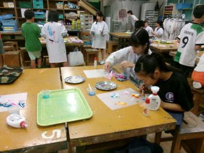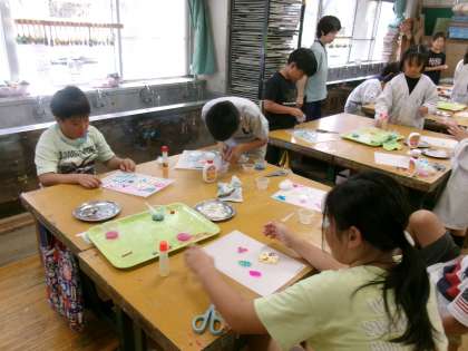 4年生は、のり・ボンド・シーサンド・スパンコールを使いながら、どんどんどんどん作業しています。