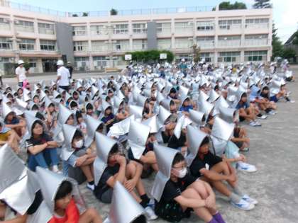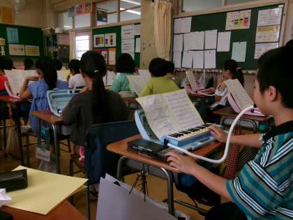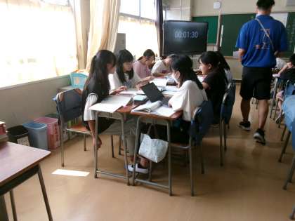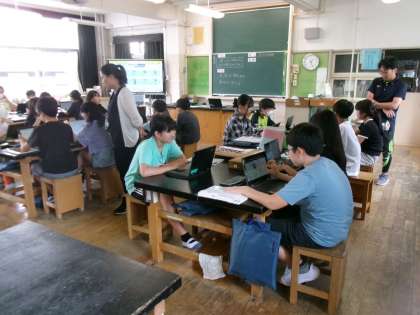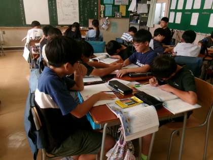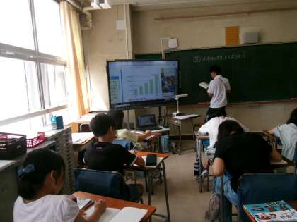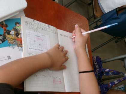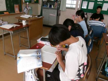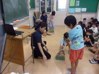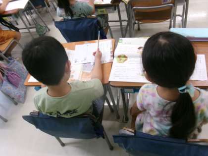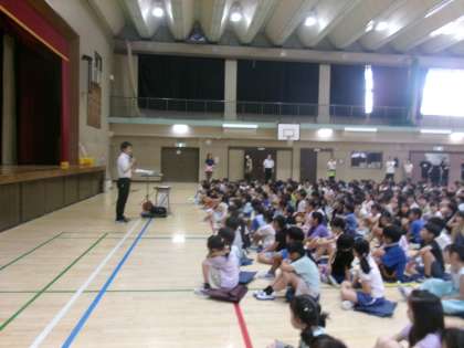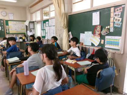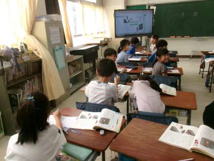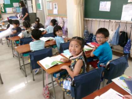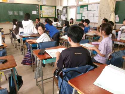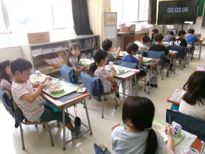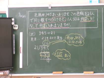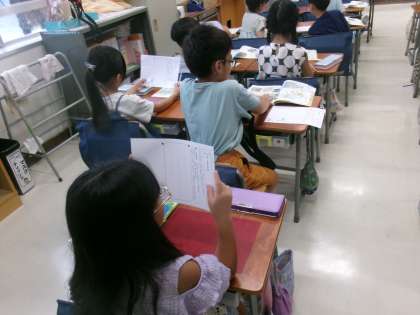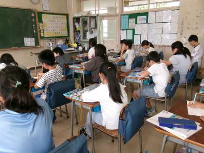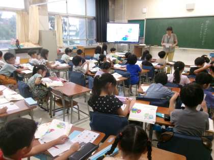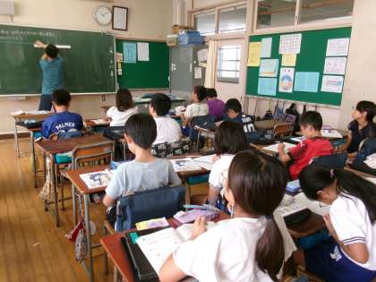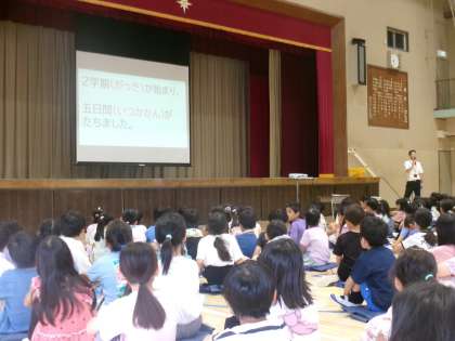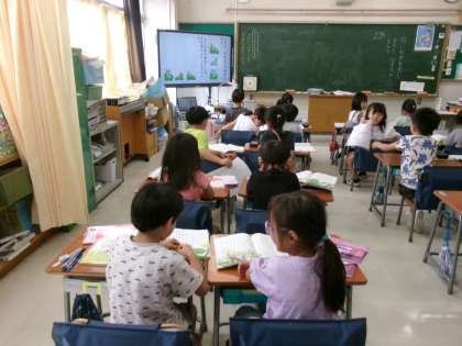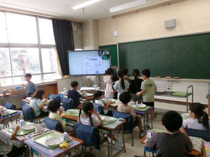 9月11日(木)5年生社会 我が国の水産業について![]() ![]() ![]() ![]() ![]() ![]() 今、自分たちが食べている海産物 美味しいですね。 でも、その海産物を捕ってくれる人がいるから、スーパーに売られ、食卓に並び、自分たちが食べられます。 その水産業で働く人々の努力や工夫をくみ取り、 日本はそういう人たちに支えられて成り立っているということを、理解していけるとよいですね。 9月11日(木)6年生算数 縮図の利用![]() ![]() ![]() ![]() ![]() ![]() 何をしているかと言うと 教科書の問題 「はるかさんが校舎から10mはなれたところに立って、校舎の上はしAを見上げている様子を表したものです。校舎の実際の高さは何mですか。」 「そんな、校舎の高さなんて、分からないよ。」 でも、できるのですね。 縮図を利用すれば。 分度器、糸等を使った手作り角度計測器を持って、校庭でチャレンジです! 開一小の地面の下に興味津々!〜6年生理科「大地のつくり」〜![]() ![]() ![]() ![]() 物語の情景を一文で説明することにトライ!〜6年生国語「やまなし」〜![]() ![]() ![]() ![]() 今日からみんな掃除名人!〜2年生ダスキン出前授業〜![]() ![]() ![]() ![]() 9月8日(月)から10日(水)の給食![]() ![]() ![]() ![]() ![]() ![]() 毎日、おいしく食べられていますね。 【9月8日】 ○胚芽パン ○マーマレードチキン ○青のりビーンズポテト ○イタリアンスープ ○牛乳 【9月9日】 ○ごはん ○菊花蒸しからし和え ○沢煮椀 ○牛乳 【9月10日】 ○チャーハン ○焼肉サラダ ○根菜のごま汁 ○牛乳 パンあり、ごはんあり、チャーハンあり、「焼肉サラダ」!も 「今日の給食!楽しみ!」、「おなか減ったあ。」と、口々に言う子がたくさん。 みんなでおいしく食べています! 9月10日(水) 6年生国語 やまなし![]() ![]() ![]() ![]() ![]() ![]() 作品 「やまなし」 5月と12月の場面を情景豊かに文章に表しています。 しかも、この二つはたくさんの 「対比」があり…。 宮沢賢治は、読んでいる人に何を伝えたかったのでしょうか。 ずっと6年生の国語の教科書に掲載してある名作「やまなし」 最高学年である6年生にとって、難解ですが読み応えもあり、奥ゆかしい作品です。 「やまなし」が伝える 「主題」は。 読み取っていきましょう! 9月10日(水)5年生 移動教室に向けて![]() ![]() ![]() ![]() ![]() ![]() 一週間後です。 5年生は「岩井移動教室」ですね。 楽しいですよ! みんなと一緒に三日間、過ごせますよ! 2学期が始まってすぐですが、この移動教室に向けて、様々な準備をしている5年生 不安も...ありますね。 初めての宿泊で。 でも、大丈夫です。 仲間がいます。 先生たちもたくさんいます。 皆さんの移動教室が、充実して楽しくなるように、私たち大人も頑張ります! 皆さんも頑張りましょう!!そして、思い切り楽しんでくださいね! 9月10日(水)4年生算数 わり算の筆算![]() ![]() ![]() ![]() ![]() ![]() 4年生は、あまりのあるわり算の学習をしています。 筆算をして、正解を導きますが、 たてる→かける→ひく→おろす を、しっかりやれば、正しい正解が導けますよ。 あまりの位にも要注意!ですね。 問題を読んだときに、 答えの見通しを立てていると、商やあまりの位にも間違いが少なくなるかもしれません。 落ち着いて、正確に、答えを導きましょう! 9月10日(水)3年生 音楽会に向けて![]() ![]() ![]() ![]() ![]() ![]() だいぶ先のように感じますが、 自分の楽器を決めて、それを質を高めて練習していくわけですから、こうやって、今の時期から一生懸命練習をしています。 3年生の楽曲は...。 「懐かしい!」と特に保護者が思っていただけると思います。 みんなで演奏し、この曲がそろって、音楽会で演奏されたら...。 それを想像するだけで感動します! 頑張れ!3年生 9月10日(水)2年生道徳 「やめなさいよ」![]() ![]() ![]() ![]() ![]() ![]() 「やめなさいよ」という教材を使って、この問いについて考えます。 よくないことを見たとき、勇気をもって注意をするのか、それともしないのか、 生活する場面では、たくさんのよいこと、そして反対によくないこともあるかもしれません。 そんなときに、自分がどう行動すればよいか、考える必要がありますね。 自分が正しいと思ったことを貫く。 難しいですが、2年生になりに、自分の言葉で、考えをもっていきます。 9月10日(水)1年生国語 おはなしをたのしもう![]() ![]() ![]() ![]() ![]() ![]() 「おはなしをたのしもう」 という単元で「やくそく」というお話を学習しています。 2学期になり、知っている言葉も増え、書ける字も増え、想像力もより豊かに なった1年生 おはなしの世界に入り込み、登場人物の言動を読みながら、どのような思いをもつのでしょうか。 入学してから5か月。 意欲的に学習している1年生です! 9月8日(月)全校朝会![]() ![]() ![]() ![]() ![]() ![]() しかし、涼しい体育館で全校朝会ができました。 トップページ →全校朝会等の講話 →9月8日(月)全校朝会校長講話「主体的・対話的で深い学び」も併せて御覧ください。 2学期が始まって一週間 学校生活のリ