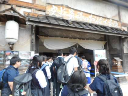 10組は、東映太秦映画村での体験です。エバンゲリオンの体験の後、お化け屋敷や迷路に分かれて挑戦しました。ミッションをクリアしたあとは、江戸の街並みを堪能しました。