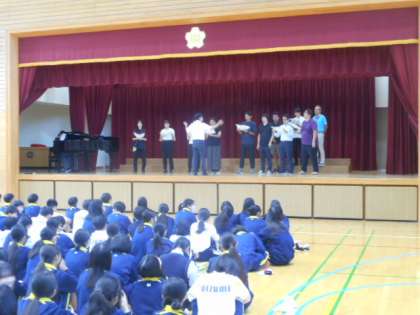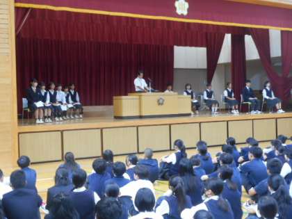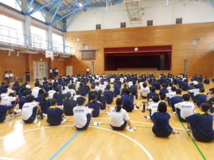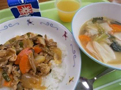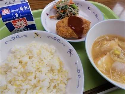 NTT東日本からは、川前監督、堀川監督補佐を始め、緑川選手・武井凛選手・柴田選手・山下選手・山田選手・田中選手・鈴木選手・山北奈選手の10名で多くの方が日本代表である豪華メンバーで指導にいらっしゃいました。 基礎打ちを始め、NTT東日本の練習メニューも体験させてもらいました。練習の後には、選手対生徒のチャレンジマッチも体験させていただきました。 終始笑顔で対応していただき、その中にためになるアドバイスもたくさん入れていただき、夢のような3時間でした。 企画してくださった明治安田生命、指導してくださったNTT東日本の選手の方々、見学していただいた多くの保護者の方に感謝申し上げます。 この経験を、次の大会に生かせるように今後の練習に励んでいきます。 ![]() ![]() ![]() ![]() ![]() ![]() 9月30日(火)の献立![]() ![]() コチュジャン丼の「コチュジャン」は、韓国でよく使われる甘辛い味が特徴の調味料です。材料に唐辛子も使われているため、赤みを帯びた色をしています。韓国では日本でいうしょうゆのように日常的に使われている調味料だそうです。主な材料はもち米麹で、唐辛子の粉や塩などで調味し発酵熟成させて作られます。 ゼリーはすりおろしりんごとりんごジュース、砂糖、水、アガーを煮て冷やして固めて作りました。すりおろしたりんごのつぶつぶ食感が感じられます。 第2学年マナーアップ講座より![]() ![]() ![]() ![]() ![]() ![]() 9月29日(月)の献立![]() ![]() 今日の主菜は肉じゃがコロッケです。コロッケは元々フランス料理の「クリケット」からきたといわれています。クリケットは、「クロッケー」というスポーツに使う道具に形が似ていることと、フランス語でカリカリしたものという意味の「クロッカー」から名付けられたそうです。ただ、フランス料理のクリケットはホワイトソースを使ったもの(日本でいうクリームコロッケ)で、日本のようにじゃがいもを使ったものではないので、日本のコロッケは日本生まれのものです。今日はソースをかけて食べました。 合唱コン練習始まる![]() ![]() ![]() ![]() ![]() ![]() 修学旅行3日目5