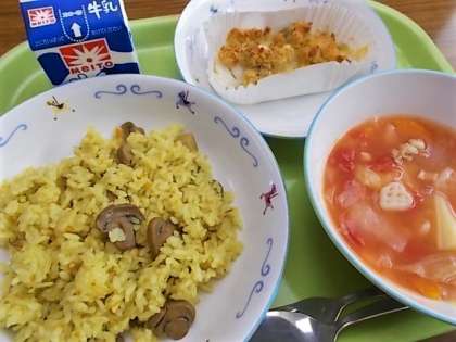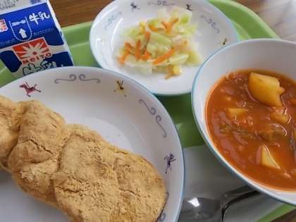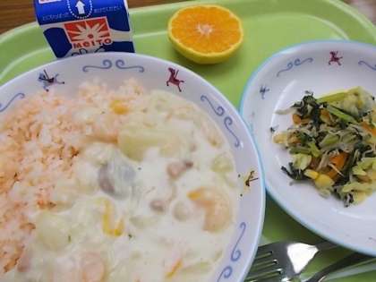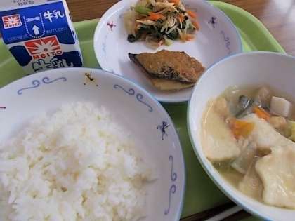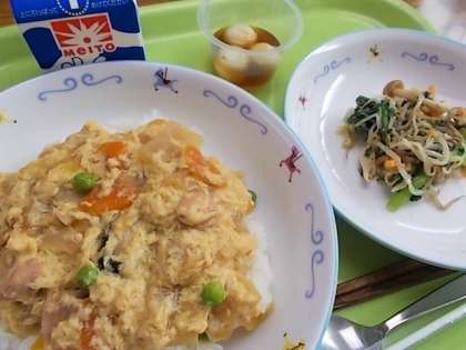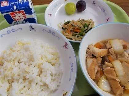 10月14日(火)の献立![]() ![]() 今日の米粉入りりんごケーキには、小麦粉の他に上新粉というお米の粉を使っています。上新粉は、うるち米という普通の米を水につけてつぶしたものを乾燥させて作ります。白玉粉や団子粉のようにもち米が入っておらず、和菓子にも洋菓子にも使われます。今日は小麦粉と一緒に使うことで小麦粉だけのときよりももちもちとした食感になっています。 ケーキの中には秋が旬のりんごも入れています。20日は同じくりんごを使った揚げアップルパイもでます。楽しみにしていてくださいね。 サッカー部新人戦練馬区予選 決勝進出![]() ![]() ![]() ![]() 準決勝では2点を先制される苦しい展開でしたが、粘り強くゴールを狙い、同点に追いつきPKでの勝利です。 10月19日に決勝が予定されていますので、ご声援よろしくお願いいたします。 10月12日 準々決勝VS関中学校 ○4−1 10月13日 準決勝VS開進第四中学校 ○2−2 PK4−2 10月10日(金)の献立![]() ![]() 今日は青森県の郷土料理です。 せんべい汁は青森県八戸市周辺で江戸時代に生まれた伝統的な郷土料理です。肉や野菜でだしをとった汁の中に、小麦粉と塩で作る鍋用の南部せんべいを割り入れて、煮込んで作ります。このせんべいは汁もの用に開発されたもので、煮込んでもとけにくく、食べると独特の食感があるように焼き上げてあります。 青森はにんにくの生産量が日本一で、約7割をしめています。今日は魚のつけ汁にすりおろしたにんにくを加えています。 10月9日(木)の献立![]() ![]() ナタデココはココナッツ果汁を発酵させて固めたフィリピン発祥の食品です。見た目は寒天に似ていますが、コリコリとした食感はナタデココ特有です。今日は四角と星の2種類のナタデココを8:2の割合で入れています。星のナタデココは少ないので入っていたらラッキー!です。 今日は麻婆豆腐は調味料に赤みそ、甜麺醤、豆板醤、オイスターソース、ラー油などを入れて作ります。ご飯にかけて麻婆豆腐丼として食べました。 10月8日(水)の献立![]() ![]() ポークビーンズはアメリカの煮込み料理です。ポークは豚肉、ビーンズは豆のことで、その名前のとおり豚肉と豆を使って作ります。豆は白インゲン豆という豆を使っていて、大豆と比べてタンパク質が多い種類の豆です。 学校のポークビーンズはケチャップ、ピューレ、カレー粉、チリパウダー、バターなどで味付けしています。カレー粉やチリパウダーを使っていますが、辛くなりすぎないよう調節して作っています。 10月7日(火)の献立![]() ![]() 今日のぶどうは黒色のピオーネと黄緑色のシャインマスカットの2種類です。ピオーネは巨峰を親に持つ大粒で香りのよいぶどうです。ピオーネの皮は固めなので、むいて食べる方がよいかもしれません。シャインマスカットは2006年に品種登録された新しい白ぶどうで、大粒で種がなく皮ごと食べられるのが特徴です。今日は2種類の味の違いを感じてもらえればと思い、1個ずつつけました。スーパーでもいろいろな種類のぶどうが売られているので、他にどんな種類があるかぜひ見てみてください。 10月6日(月)の献立![]() ![]() 10月6日はお月見です。お月見には十五夜と十三夜があり、6日は十五夜にあたります。十五夜は別名「中秋の名月」や「芋名月」ともいわれ、一年で一番月がきれいに輝く日とされています。 お月見の始まりは中国で、昔から中国では十五夜に里芋を食べる習慣がありました。これは、お月見の時期が里芋の収穫時期で、収穫祭ともされていたことからきたそうです。日本でもこの日にはすすきや月見団子をお供えします。今日はデザートをみたらしのたれをかけた月見団子にしました。 生徒朝礼と後期認証式![]() ![]() ![]() ![]() ![]() ![]() 10月3日(金)の献立![]() ![]() 今日の果物は秋から冬が旬のみかんです。みかんはいよかんやゆず、グレープフルーツなどと同じかんきつ類です。今日のみかんは早生みかんで、12月頃のみかんに比べて緑がかっていて甘酸っぱいのが特徴です。 みかんには、のどの風邪に強い成分や皮フや鼻の粘膜を丈夫にしてくれるビタミンCが多く含まれるので、風邪の予防にも効果があります。これから春にかけて給食でもいろいろなかんきつ類が登場します。楽しみにしていてくださいね。 10月2日(木)の献立![]() ![]() アブラガレイは身のやわらかい白身魚の一種で、カレイの仲間です。旬は秋から冬ですが、北海道の日本海側では一年中水揚げされます。アブラカレイは漢字で『油鰈』と書かれるほど身に油が多い魚です。加熱しても固くなりませんが、油が多いため身崩れして溶けてしまう調理の難しい魚です。 皆さんが良く知っている調理方法としてはお寿司の『エンガワ』があります。エンガワは魚の種類ではなく、魚の部位の名前で、ヒラメやカレイのひれの付け根部分のことを指しています。 本校華道部より![]() ![]() ![]() ![]() ![]() ![]() バドミントン講習会