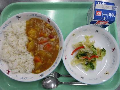 今日のハッシュドポークは調理員さんが「おいしくなりますように」と愛情をこめてじっくり煮込んでくれました。子供たちからも大人気でした。