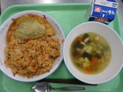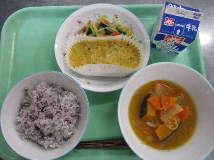 今日は、紅葉をイメージした「もみじごはん」にしました。にんじん・鶏挽き肉・ごま油が入っており、甘みと旨味が感じられるごはんでした。