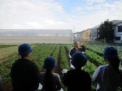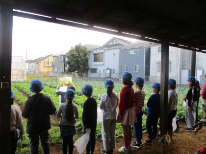1カ月前に植えた大根の種が30センチ以上成長し、4年生も先生もびっくり!12月に収穫の予定です。これからどのくらい成長するのか、今からとても楽しみです。